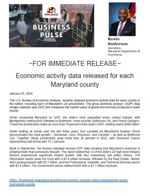 recently released economic activity data for every county in the nation, including each of Maryland’s 24 jurisdictions. The gross domestic product
